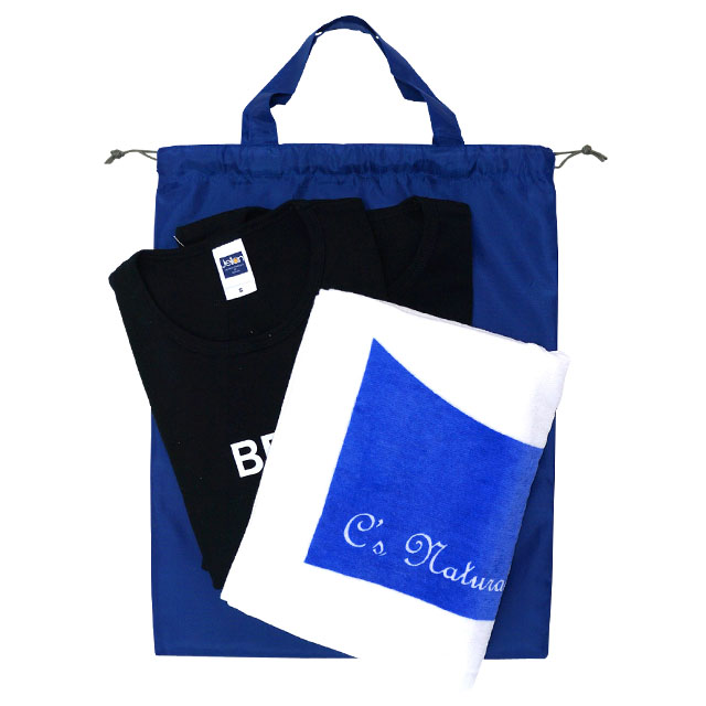 持ち手付きの巾着袋です。普通のマチなしの手提げバッグとしても、口を絞って巾着バッグとしてもお使いいただけます。汚れにくく丈夫なポリエステル生地、B4対応サイズで、シューズバッグやランドリーバッグとしてお使いいただけます。