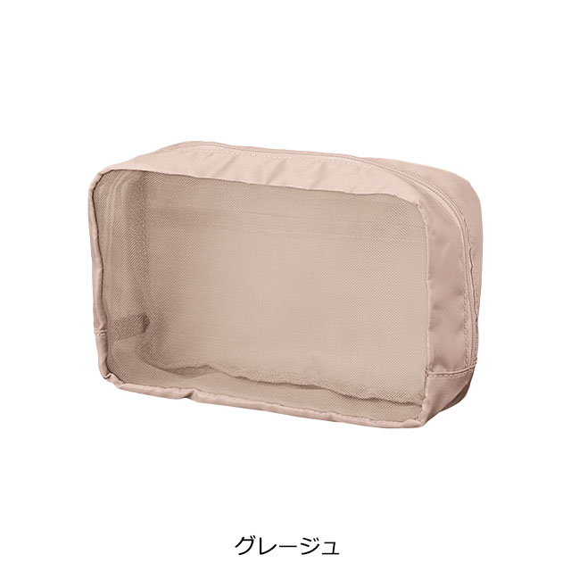 トレンドのメッシュ素材のBOX型ポーチです。淡い色味のカラーを揃えております。表面がメッシュ仕様なので中身が見えて便利にお使いいただけます。マチ付きなので幅のあるものも収納でき、トラベル用におすすめです。