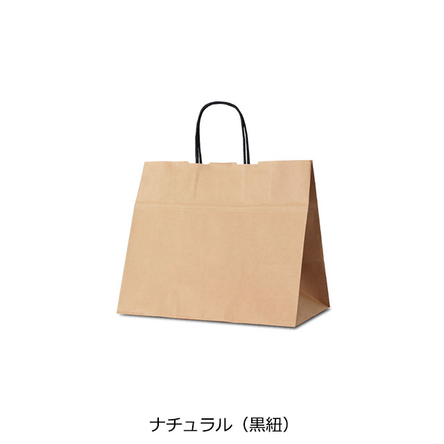 紙本来の風合いを活かした未晒ナチュラルの本体に、黒の持ち手紐を組み合わせた紙袋です。シンプルな中にもコントラストが効いたデザインで、上質感をプラスします。