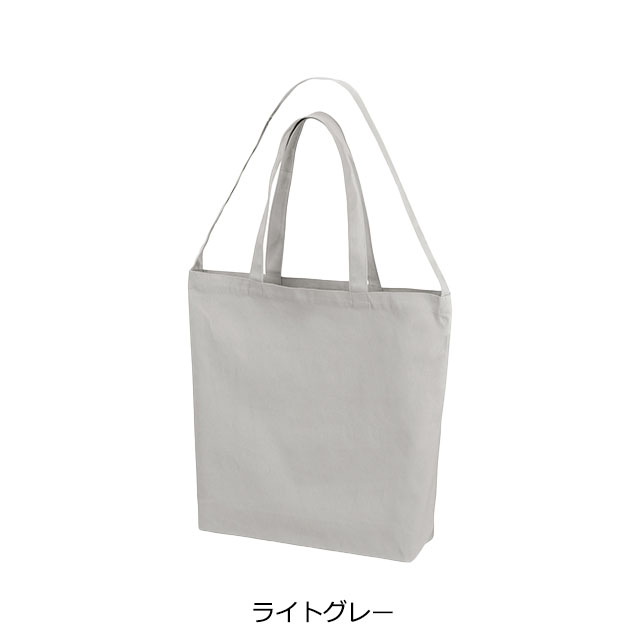 8.3オンスのやや厚みのあるコットン生地を使用した、船底型バッグです。容量は約16リットルの大きめサイズ。衣類や雑貨、まとめ買いした荷物もしっかり収納できます。