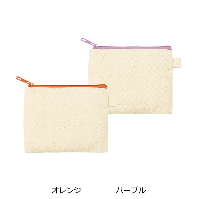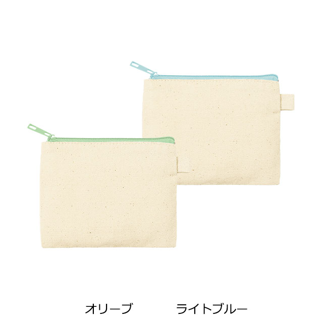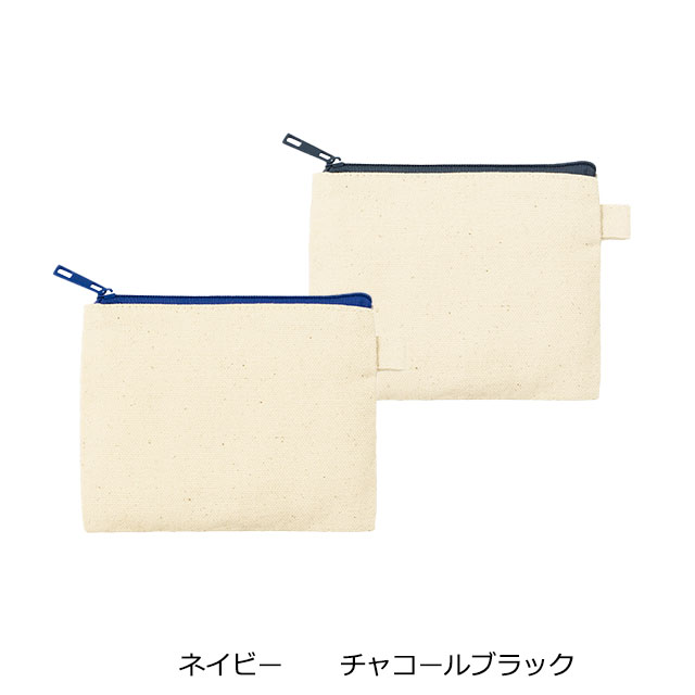 生成りのコットン素材を使用した、シンプルで使いやすいフラットポーチです。