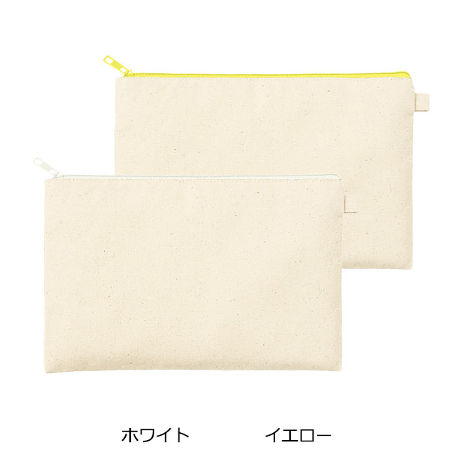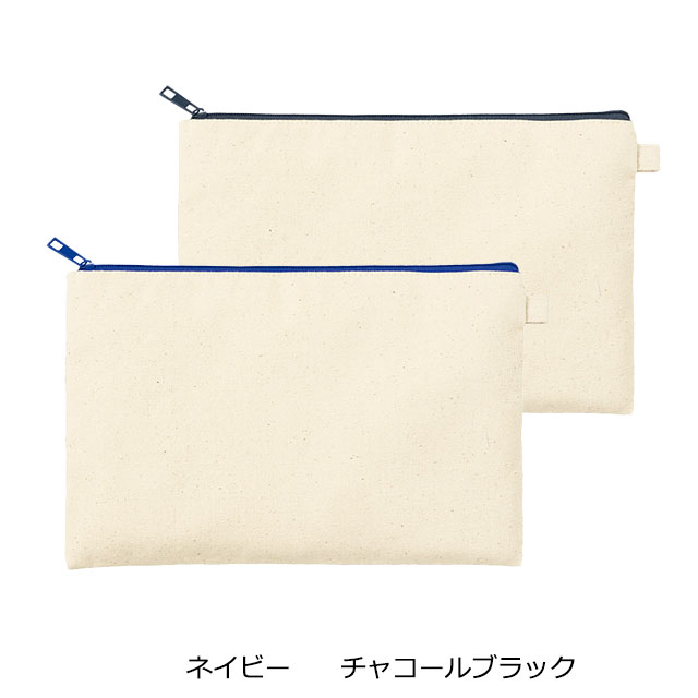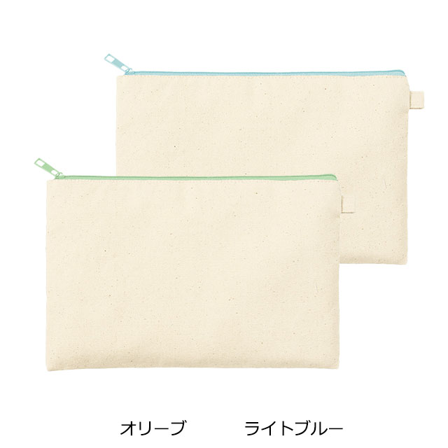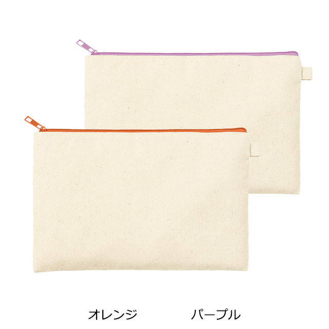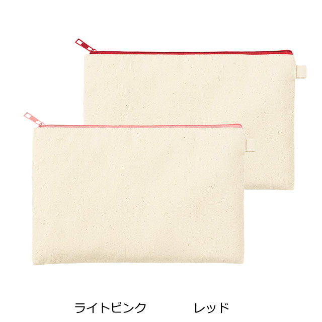 生成りのコットン素材を使用した、シンプルで使いやすいフラットポーチです。