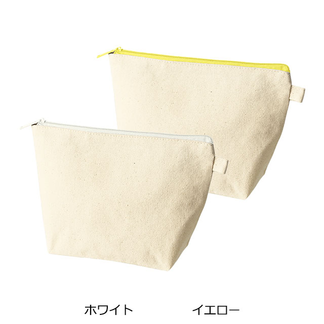 生成りのコットン素材を使用した、使い勝手の良いマチ付きポーチです。