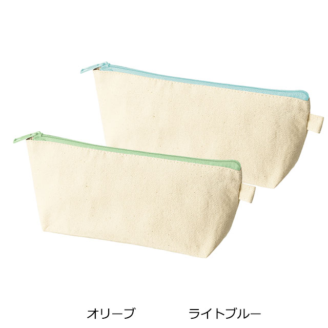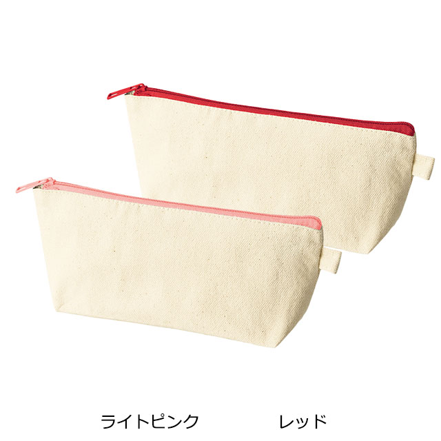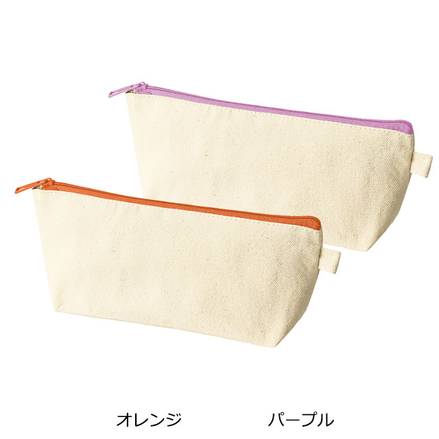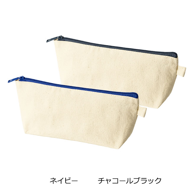 生成りのコットン素材を使用した、横長のマチ付きポーチです。