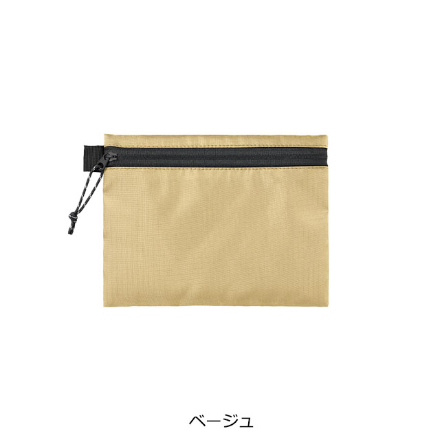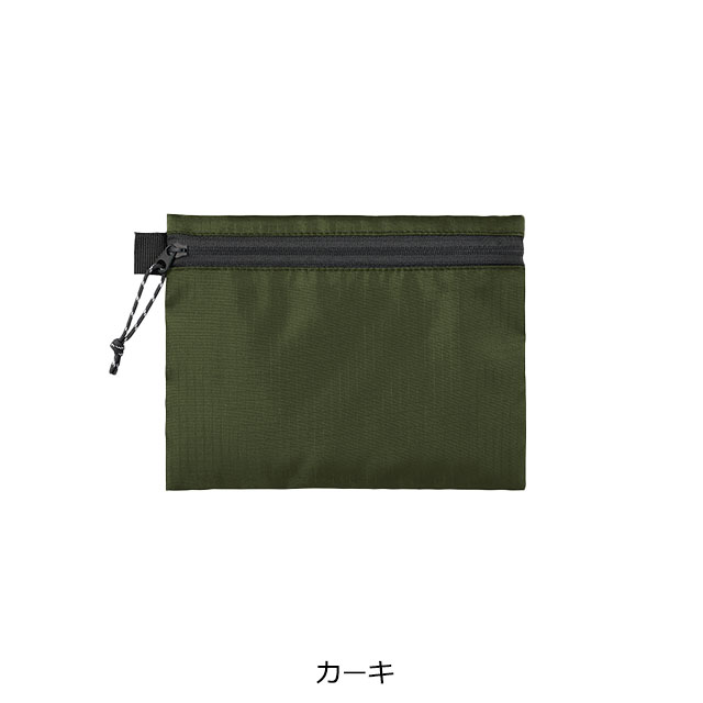 アウトドアシーンでも使われる丈夫なリップストップ生地を使用した、フラットタイプのマチなしポーチです。軽量ながら引き裂きに強く、日常使いからアクティブなシーンまで幅広く活躍します。すっきりとしたフラット形状なので、バッグの中でもかさばりにくくスマートに持ち運び可能。デイリーユースはもちろん、旅行やアウトドアのサブ収納としても便利です。サイドにはループ付いており、キーホルダーやカラビナを取り付けて持ち運ぶことが可能。バッグやベルトループに掛けるなど、使い方の幅が広がります。ファスナーには柄紐の引手を採用。開閉しやすく、実用性とデザイン性を兼ね備えたアクセントになっています。用途に合わせて選べる3サイズ展開。こちらは、ペンや文具類をまとめて収納できる、ペンケースとして使いやすいサイズ感です。