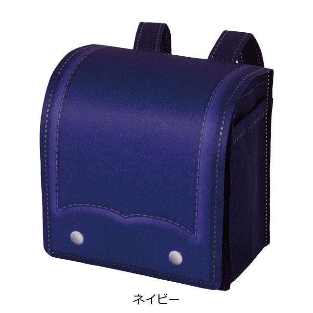 フラップ部分にスナップボタンが付いており、本物のランドセルのように開封可能。底面にはボール紙が入っているので型崩れしにくく、中身をきれいに収納できます。