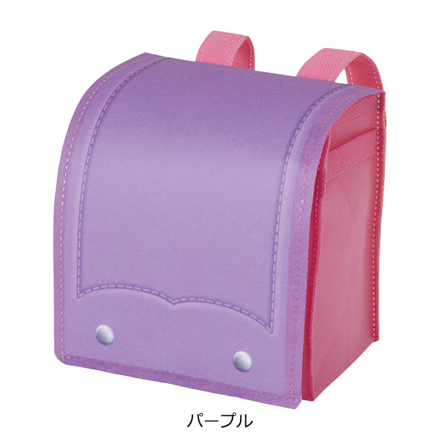 ランドセルの形をモチーフにした、遊び心のある不織布ランドセル型バッグです。ころんとしたフォルムとミニチュア感のあるデザインで、ギフトやイベント配布にぴったり。