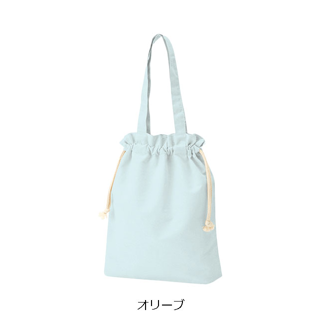 しっかり口を閉じられるのが嬉しい、巾着タイプのトートバッグです。シーチング生地と比較して中身が透けにくく、肩掛けもでき、カジュアルなシーンで活躍します。平らな状態でB4サイズ対応、ガゼットタイプのマチ付きで荷物もたっぷり収納可能できるので、通勤・通学時のバッグとして、また荷物が増えた時のサブバッグとして、幅広く活用可能です。同仕様で無漂白のナチュラルカラー(エコマーク付き)もございます。同デザインで一回り小さいB5サイズもございます。