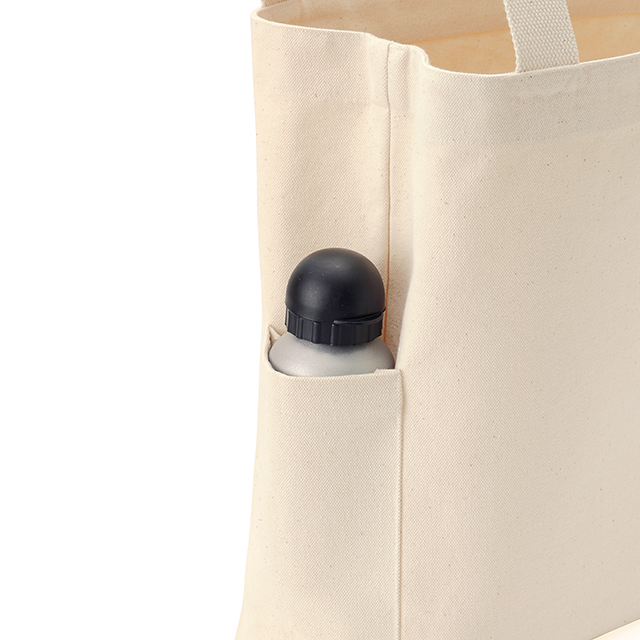 大容量のA3サイズキャンバスバッグに、使いやすいサイドポケットを2つお付けしました。16オンスの厚手キャンバス生地を使用しているので、丈夫で長くご愛用いただけます。印刷面積が大きいのも魅力です。ナチュラルカラーは無漂白で、地球にやさしいエコマーク商品となっています。同仕様でブラックもございます。また、同デザインでランチバッグサイズもございます。
