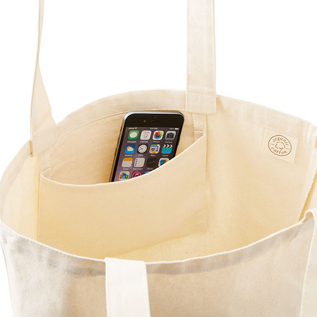 内ポケット付きでスマホや鍵などを収納するのにも便利なキャンバスバッグ。A4サイズの入る汎用性の高いMサイズ。オーガニックコットンを使用しており、SDGs啓蒙活動にもおすすめ。正面にシルク印刷または熱転写印刷で名入れ可能なため、企業ロゴを入れたノベルティや、お店のデザインを入れた販売品としてご利用ください。短納期・小ロットでもご対応可能です。