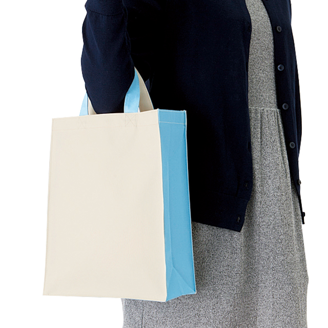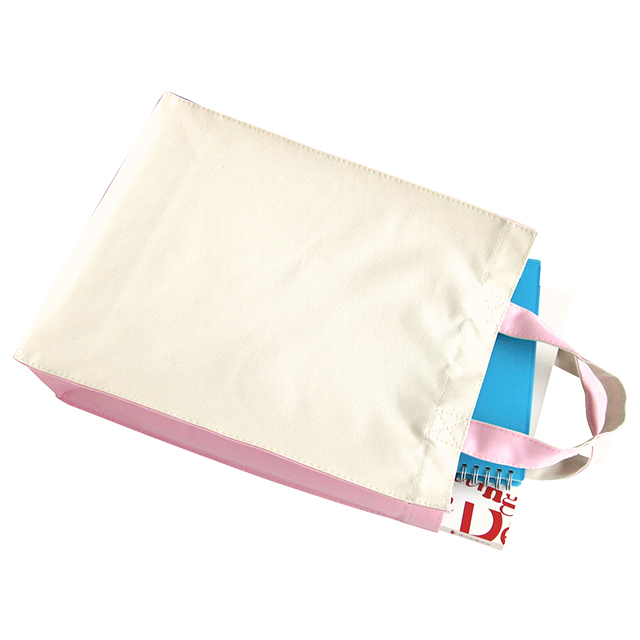 しっかりしたポリエステル生地の角底手提げバッグです。A4サイズ対応なので、イベントや説明会で資料・パンフレットなどを入れてお渡ししたり、塾や学校などのレッスンバッグとしてもご利用いただけます。サイドのカラーがデザインのアクセントになっています。