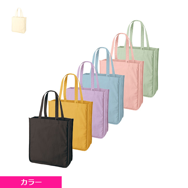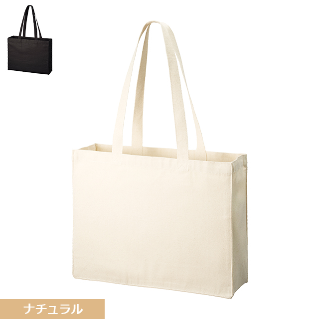 シーチングよりもさらにしっかりとした生地が特徴の厚手のコットントートバッグはキャンバス、帆布とも呼ばれている人気のアイテムです!マチのないフラットでシンプルなタイプのバッグです。